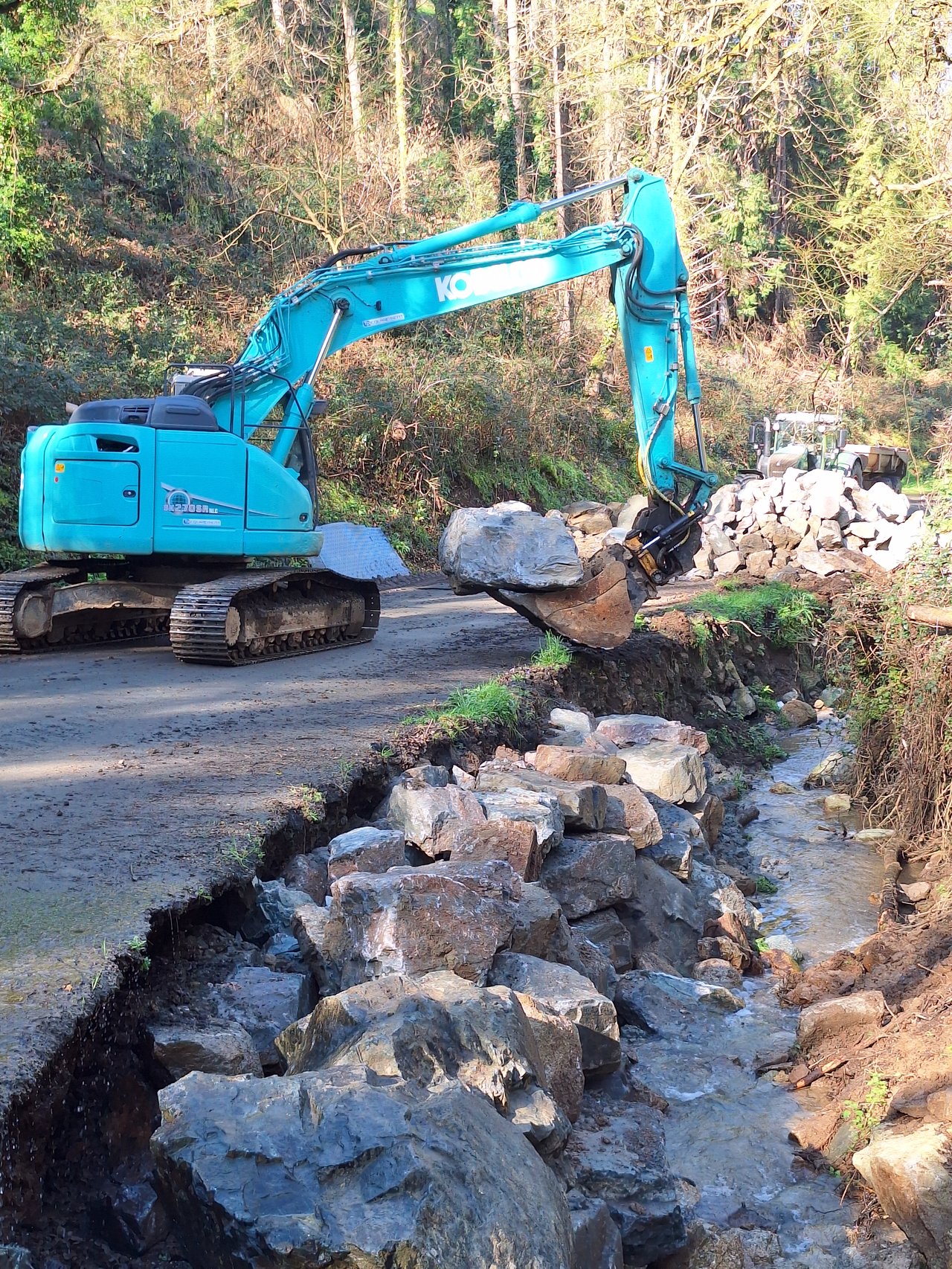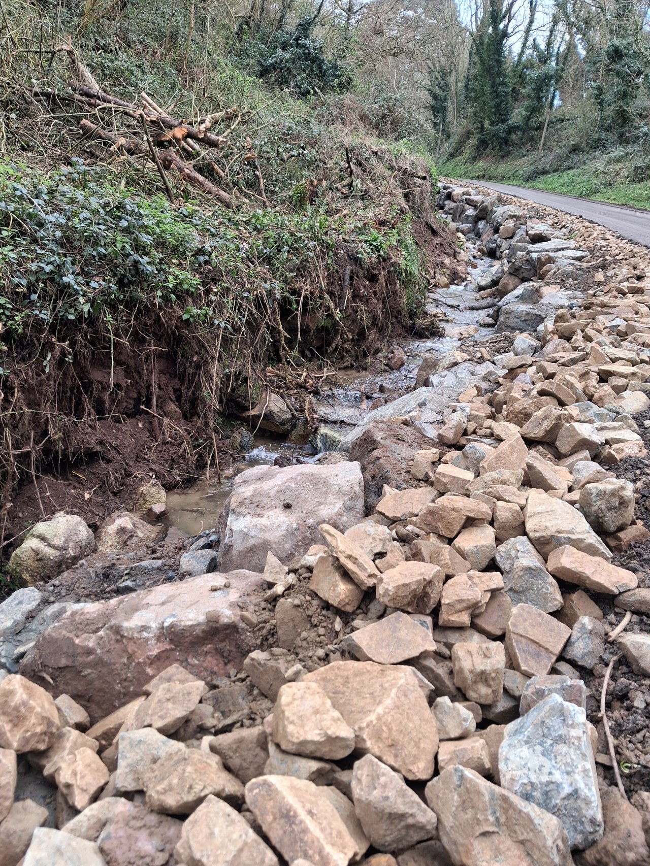 La première phase des travaux a permis de renforcer le soutènement de la route grâce à la pose de cailloux. Cette intervention a toutefois été retardée par les conditions météorologiques de ces dernières semaines.
