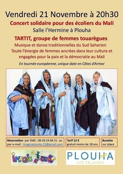 L'association Imagine et Conte accueille à L'Hermine le groupe de femmes touarègues, Tartit, pour un concert solidaire en faveur des écoliers du Mali.