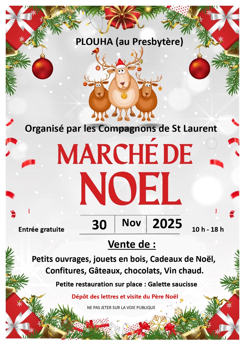 Le dimanche 30 novembre 2025, rendez-vous au marché de Noël organisé par les Compagnons de Saint Laurent au Presbytère de Plouha !