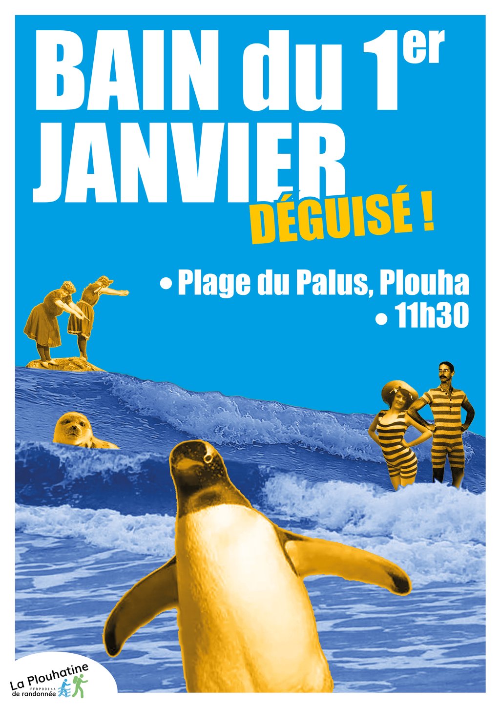 Bain du 1er janvier 2026 déguisé sur la plage du Palus à PLouha à 11h30. Des boissons chaudes vous seront servies afin de vous réchauffer après cette belle baignade !