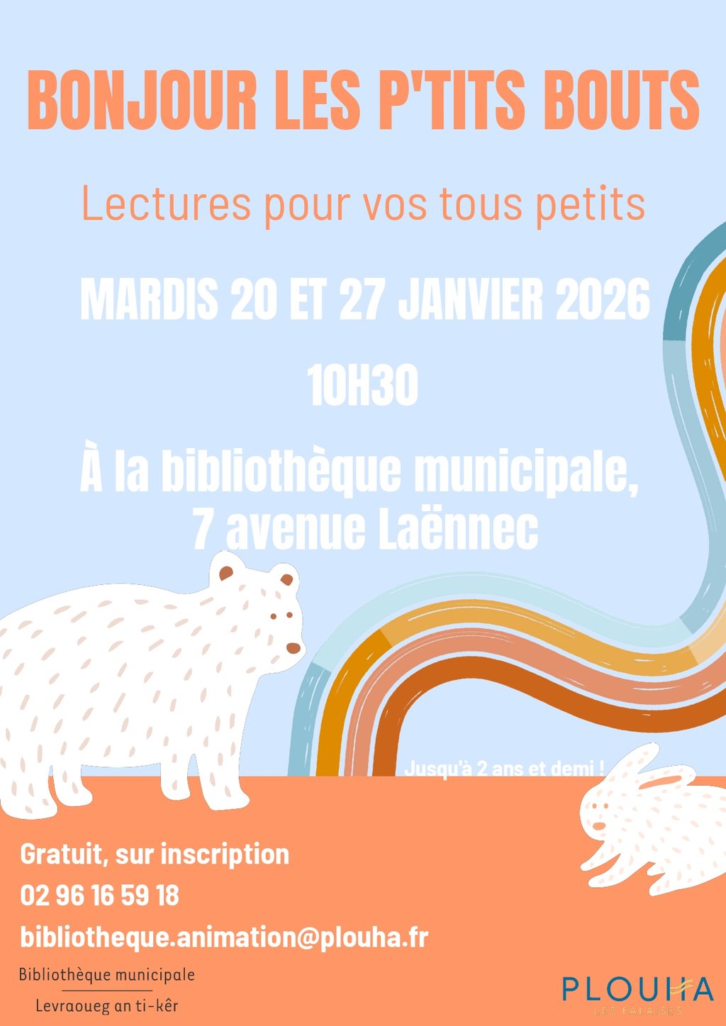 Sur réservation au 02 96 16 59 18 ou par mail : bibliotheque.animation@plouha.fr