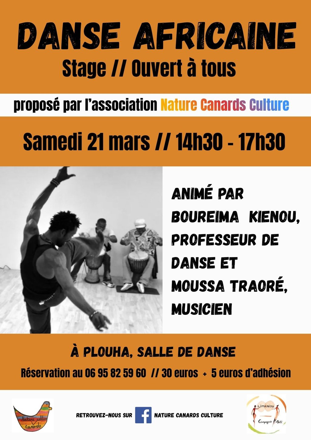 Le samedi 21 mars 2026, l'association Nature Canards Culture vous propose un stage de danse africaine ouvert à tous !