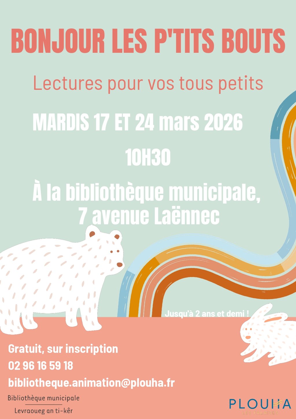 Renseignements et réservations au 02 96 16 59 18 ou par mail : bibliotheque.animation@plouha.fr